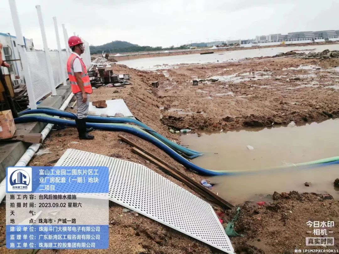 在斗門大橫琴5.0產(chǎn)業(yè)新空間萬(wàn)鋰新材料(一期)項(xiàng)目現(xiàn)場(chǎng),開(kāi)展了臺(tái)風(fēng)后復(fù)工復(fù)產(chǎn)安全大檢查,現(xiàn)場(chǎng)組織排水、圍擋修復(fù)各項(xiàng)工作。