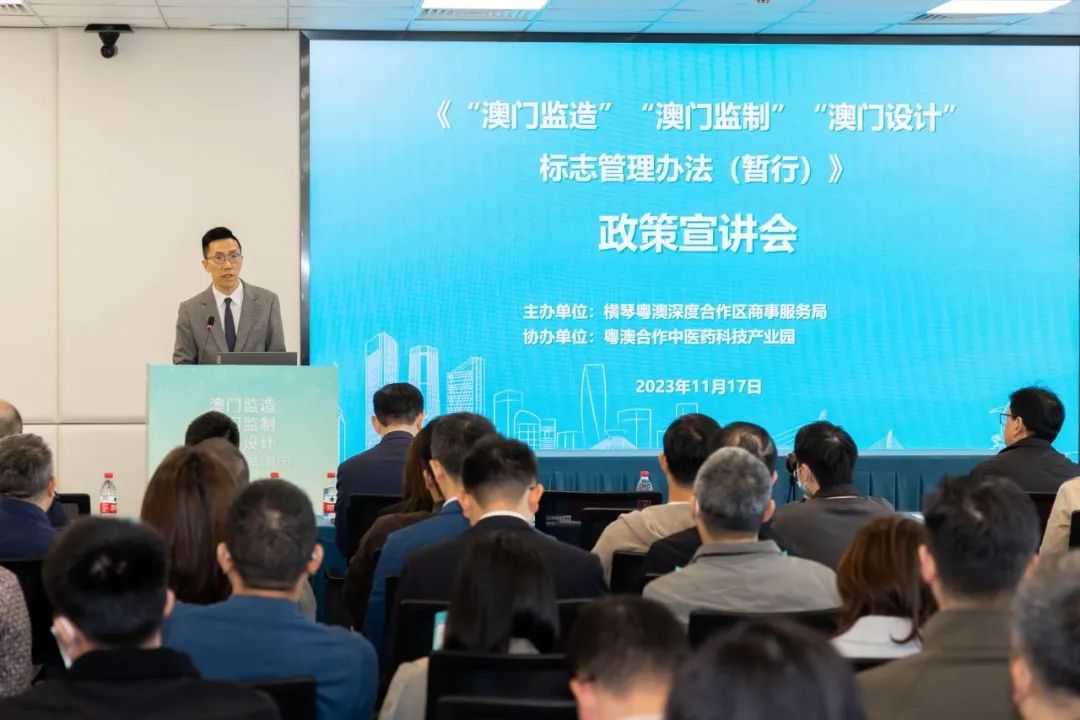 11月17日,《“澳門(mén)監(jiān)造”“澳門(mén)監(jiān)制”“澳門(mén)設(shè)計(jì)”標(biāo)志管理辦法(暫行)》(以下簡(jiǎn)稱《管理辦法》)政策宣講會(huì)在橫琴粵澳深度合作區(qū)(以下簡(jiǎn)稱合作區(qū))琴澳國(guó)際法務(wù)集聚區(qū)舉行。此次宣講活動(dòng)由合作區(qū)商事服務(wù)局主辦,由參與《管理辦法》起草的珠海大橫琴集團(tuán)有限公司下屬企業(yè)珠海大橫琴科技發(fā)展有限公司(以下簡(jiǎn)稱大橫琴科技公司)提供支持。活動(dòng)旨在幫助企業(yè)全面了解申請(qǐng)標(biāo)志的資格條件、使用標(biāo)志的具體要求,以及標(biāo)志運(yùn)行管理的保障機(jī)制等。