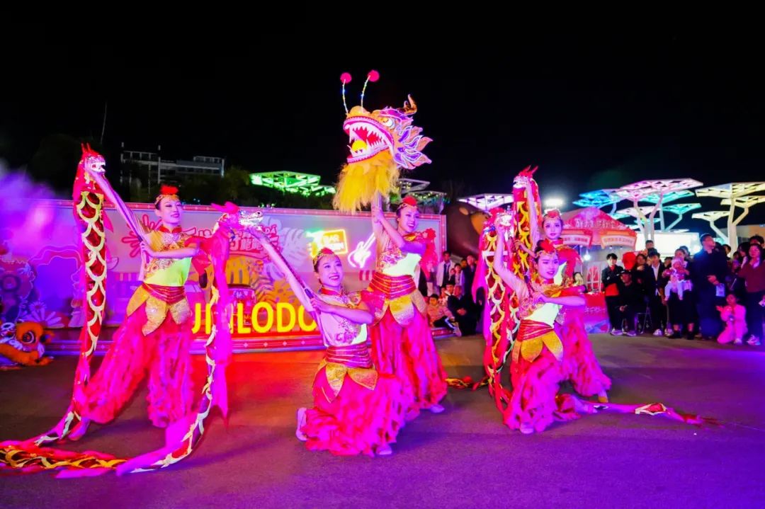 歡慶甲辰龍年元宵佳節(jié)的橫琴星樂度·露營小鎮(zhèn),絢麗燈光流光溢彩,以傳統(tǒng)文化和沉浸式光影場景打造一個“不夜城”。