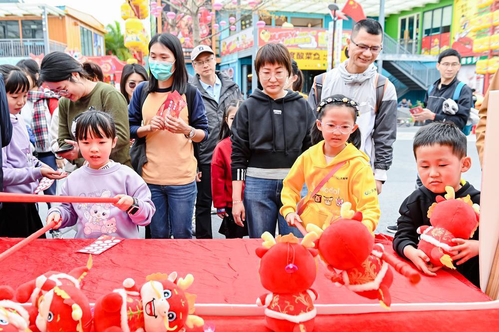 趣味游園游戲活動(dòng)由大橫琴集團(tuán)旗下的13家二級企業(yè)承辦,以“一企一特色、一家一品牌”為主調(diào),既有猜燈謎、剪窗花等民俗活動(dòng),也有數(shù)字華容道、幸運(yùn)射箭等現(xiàn)代游戲,煙火氣十足,又不乏文化味,為游客帶來了一場年味十足的節(jié)日盛宴?;顒?dòng)現(xiàn)場還引入了澳門美食攤位,不少市民及游客駐足攤位前品嘗地道澳門美食。