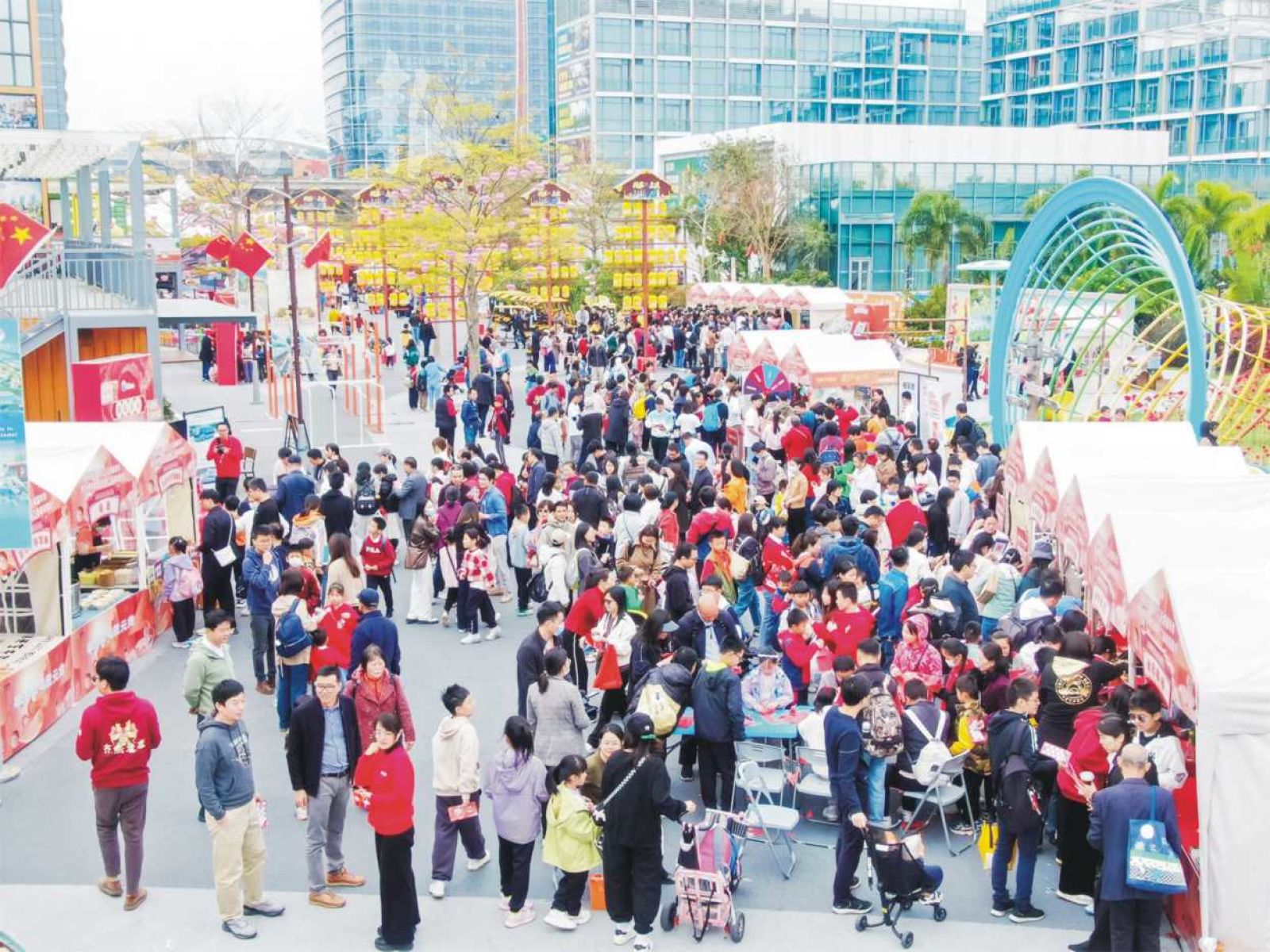 趣味遊園遊戲活動(dòng)由大橫琴集團(tuán)旗下的13家二級(jí)企業(yè)承辦,以「一企一特色、一家一品牌」為主調(diào),既有猜燈謎、剪窗花等民俗活動(dòng),也有數(shù)字華容道、幸運(yùn)射箭等現(xiàn)代遊戲,煙火氣十足,又不乏文化味,為遊客帶來了一場年味十足的節(jié)日盛宴?;顒?dòng)現(xiàn)場還引入了澳門美食攤位,不少市民及遊客駐足攤位前品嚐地道澳門美食。