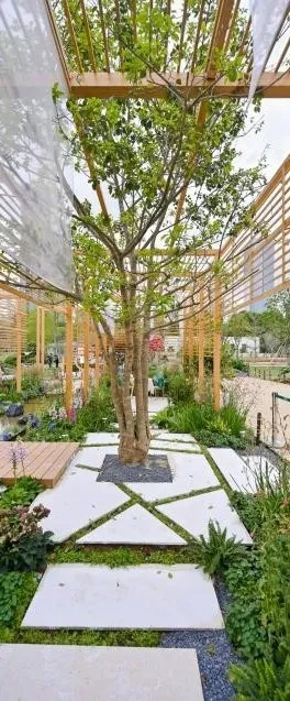 樹影婆娑,花香四溢,檸檬草、龍井茶、毛尖、柑橘、迷迭香等香草類植物,洋溢著沁人的花草清香,與茶文化主題交織呼應(yīng)。