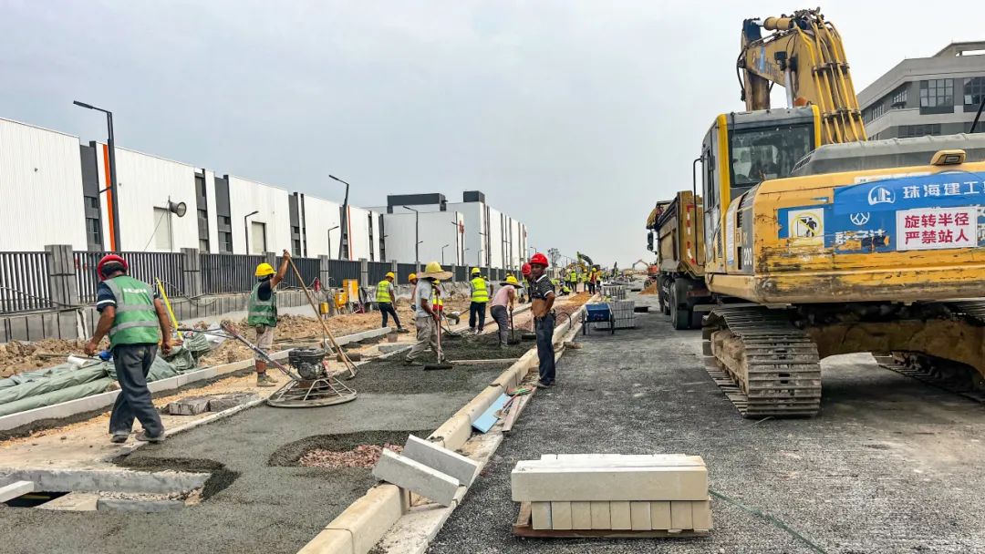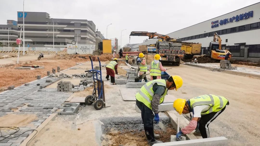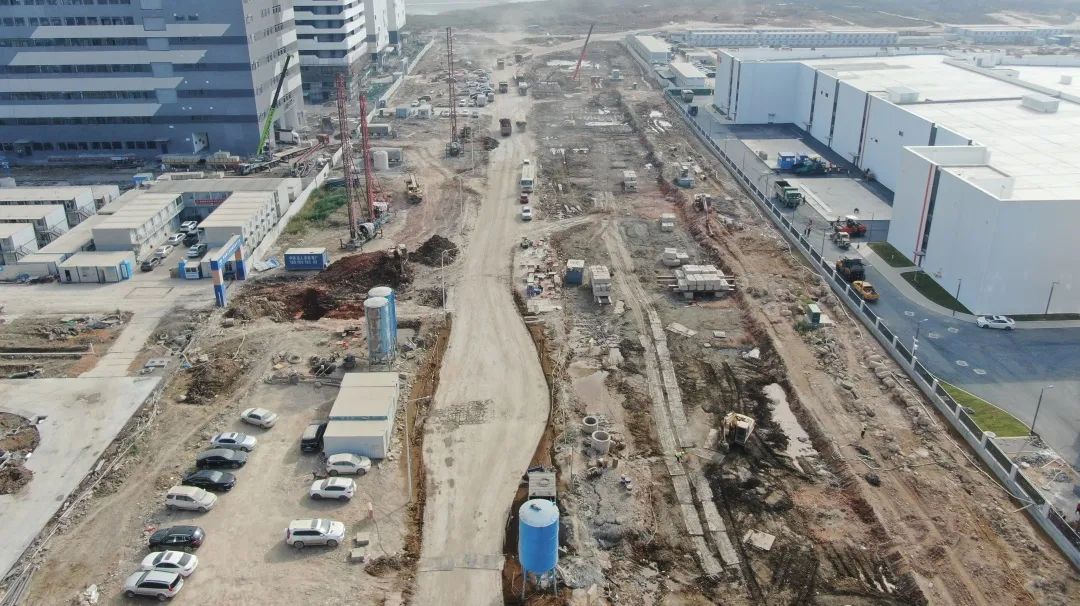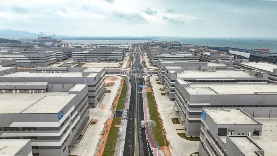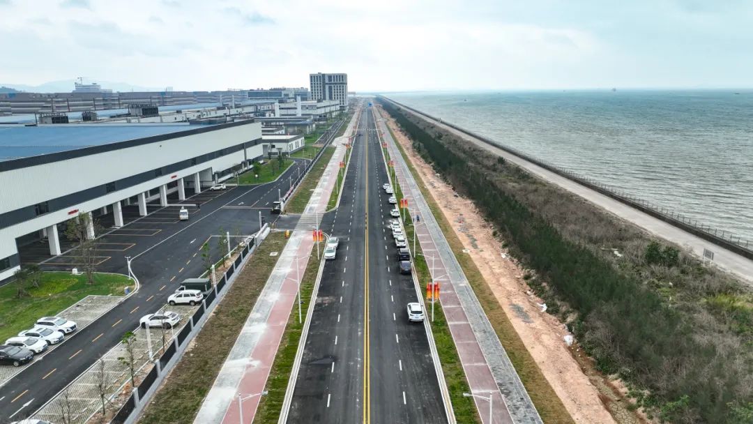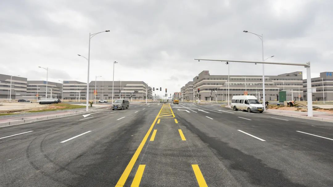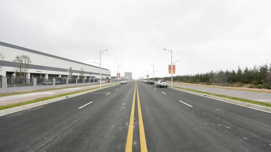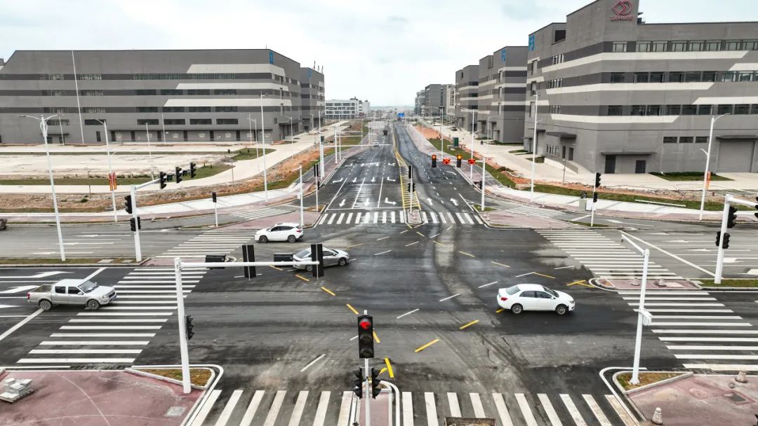 2024年1月30日,雷蛛大道、欣港路、馬山北路等4條主路和其他路段約6km的道路已按期完成,二圍北片區(qū)初步形成“一大環(huán)、兩小環(huán)”交通網(wǎng)絡(luò),基本滿足各廠區(qū)出入需求。
