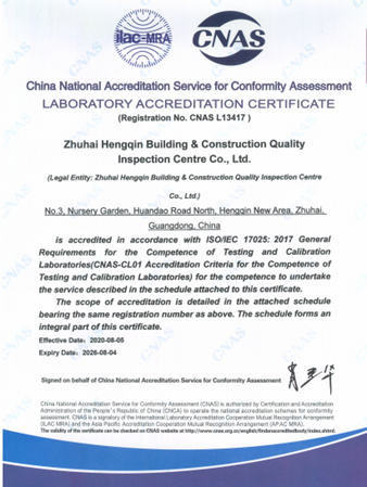 2024年5月25日至26日,由中國合格評(píng)定國家認(rèn)可委員會(huì)(CNAS)委派的評(píng)審專家組一行四人,對(duì)珠海大橫琴集團(tuán)有限公司(以下簡(jiǎn)稱大橫琴集團(tuán))下屬企業(yè)珠海市橫琴新區(qū)建設(shè)工程質(zhì)量檢測(cè)中心有限公司(以下簡(jiǎn)稱橫琴檢測(cè)中心)開展CNAS實(shí)驗(yàn)室認(rèn)可復(fù)評(píng)審。