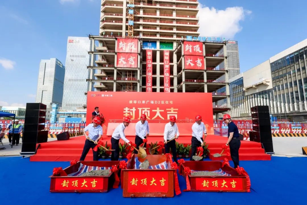 9月27日上午,由珠海大橫琴集團(tuán)有限公司(以下簡(jiǎn)稱大橫琴集團(tuán))下屬企業(yè)珠海大橫琴口岸實(shí)業(yè)有限公司建設(shè)的橫琴口岸D2區(qū)住宅主體結(jié)構(gòu)順利封頂。大橫琴集團(tuán)黨委副書記、董事、總經(jīng)理王宇聲,中建二局華南公司黨委書記、董事長(zhǎng)曲紅波,大橫琴集團(tuán)總經(jīng)理助理呂海濤等領(lǐng)導(dǎo)嘉賓出席儀式,各參建單位代表及項(xiàng)目一線職工共計(jì)100余人參加活動(dòng)。