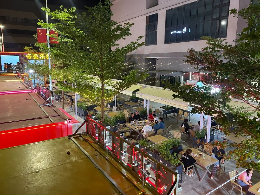 富山街市位于斗門大橫琴5.0產(chǎn)業(yè)新空間,坐落于B區(qū)公服中心西側(cè),占地面積1200㎡,有11個(gè)攤位,多個(gè)五顏六色的集裝箱錯(cuò)落有致,儼然是工廠風(fēng)的商務(wù)區(qū)—“廠BD”。