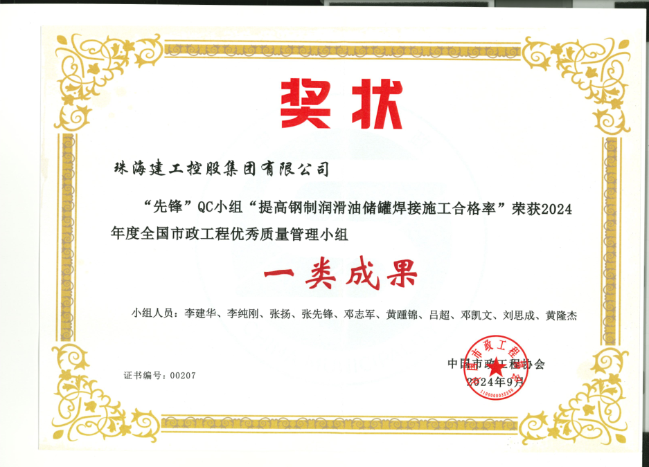 在本次QC小組活動(dòng)中,珠海建工集團(tuán)開(kāi)展了一系列業(yè)務(wù)培訓(xùn),組織技術(shù)條線輸出了QC成果共33個(gè)課題,其中《提高鋼制潤(rùn)滑油儲(chǔ)罐焊接施工合格率》獲得國(guó)家級(jí)一類成果;其余成果中15個(gè)課題榮獲省級(jí)優(yōu)秀QC成果:2個(gè)課題榮獲省級(jí)一類成果;6個(gè)課題榮獲省級(jí)二類成果;7個(gè)課題榮獲省級(jí)三類成果;技術(shù)研發(fā)中心臨時(shí)負(fù)責(zé)人李建華榮獲優(yōu)秀發(fā)布者,本次QC小組活動(dòng)的優(yōu)異成績(jī),實(shí)現(xiàn)了公司QC成果獎(jiǎng)在國(guó)家級(jí)獎(jiǎng)項(xiàng)、省級(jí)獎(jiǎng)項(xiàng)方面零的突破,為公司工程項(xiàng)目評(píng)優(yōu)奠定了基礎(chǔ)。