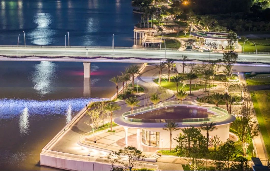 天沐琴臺坐落于天沐河中央。這里正是橫琴的核心地帶,澳門大學(xué)橫琴校區(qū)、橫琴口岸、橫琴創(chuàng)新方、橫琴文化藝術(shù)中心等配套環(huán)伺左右,占據(jù)合作區(qū)的窗口位置,未來將成為天沐河上的新地標(biāo),是新時期、新坐標(biāo)、新起點下的城市創(chuàng)新引領(lǐng)中心。