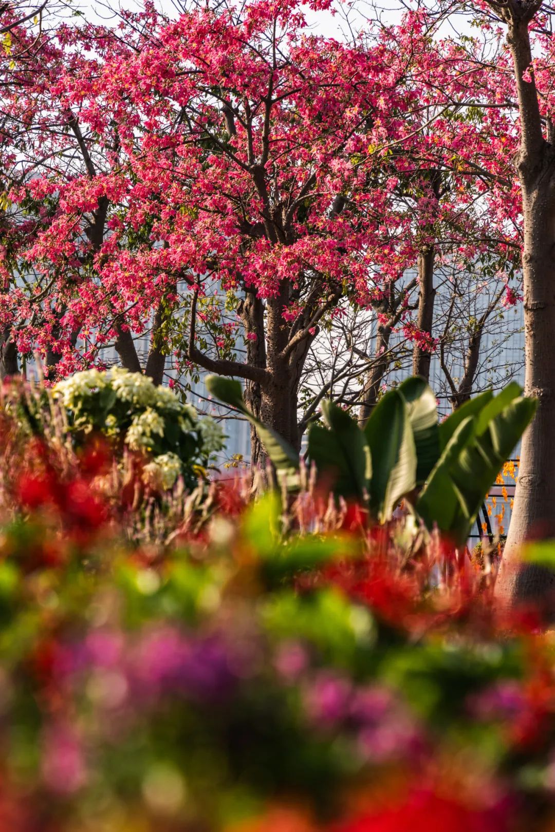 花期來臨前,大灣區(qū)一帶經(jīng)歷了較長的雨季,琴建公司及時(shí)采取應(yīng)急措施,科學(xué)調(diào)整養(yǎng)護(hù)方法,充分利用雨水對花苗的滋養(yǎng),為花海的盛開奠定了基礎(chǔ)。最終,盛放的美麗異木棉連綿不絕,乃是花海長廊對琴澳居民最好的饋贈(zèng)。