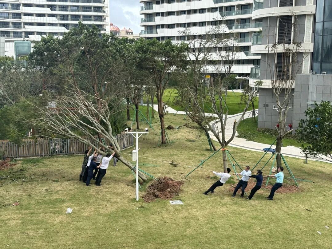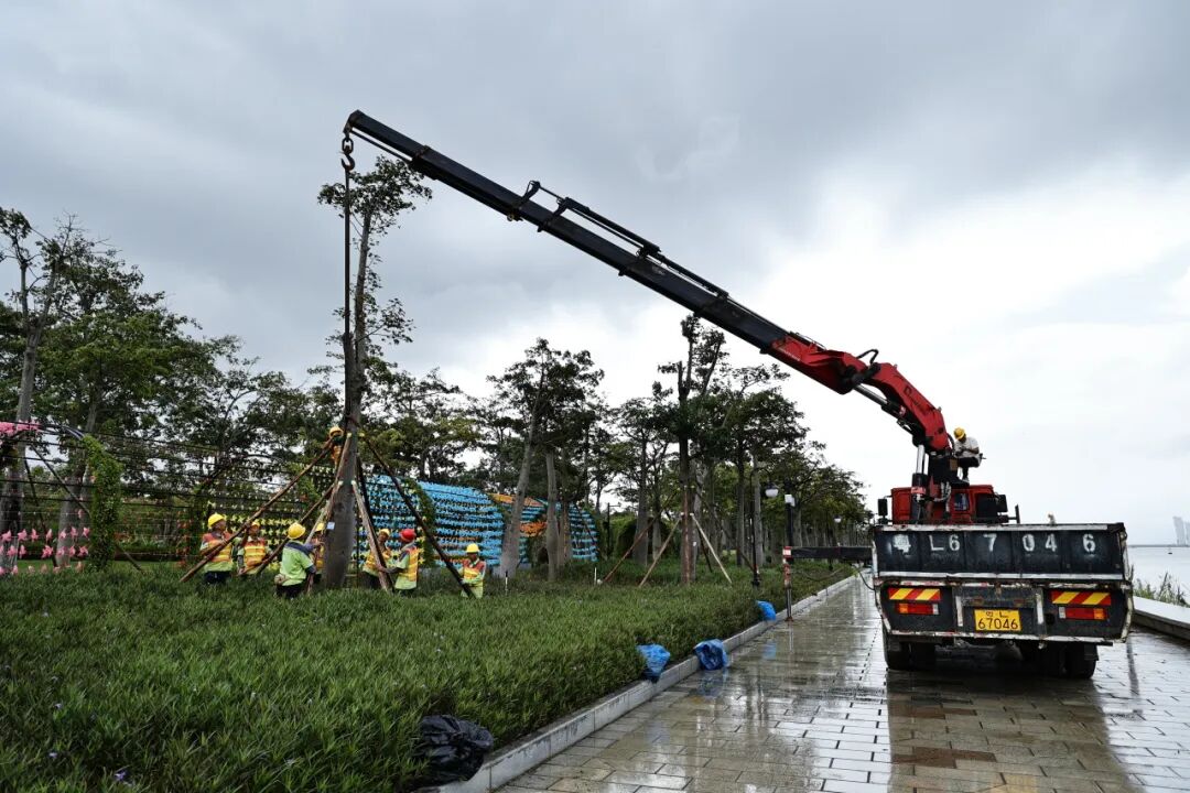 珠光集團(tuán)組織500多人次投入到橫琴星樂度·露營(yíng)小鎮(zhèn)、花海長(zhǎng)廊、濕地公園、星享·天沐酒店、南油大酒店、人才公寓等旗下文旅項(xiàng)目的復(fù)工復(fù)產(chǎn)工作,目前已高效完成園區(qū)道路清障任務(wù),全面恢復(fù)所有電力系統(tǒng),修繕園區(qū)導(dǎo)視牌、(高空)廣告牌,對(duì)帳篷頂部損毀區(qū)域進(jìn)行安全圍蔽;基本完成人才公寓受損住戶的室內(nèi)設(shè)施維修工作,有序安置受影響的住戶;加快完成花海長(zhǎng)廊3、5號(hào)驛站廣場(chǎng)因海水倒灌造成的淤泥與垃圾清運(yùn),以及賽艇公園大面積倒伏樹木扶正復(fù)原工作。